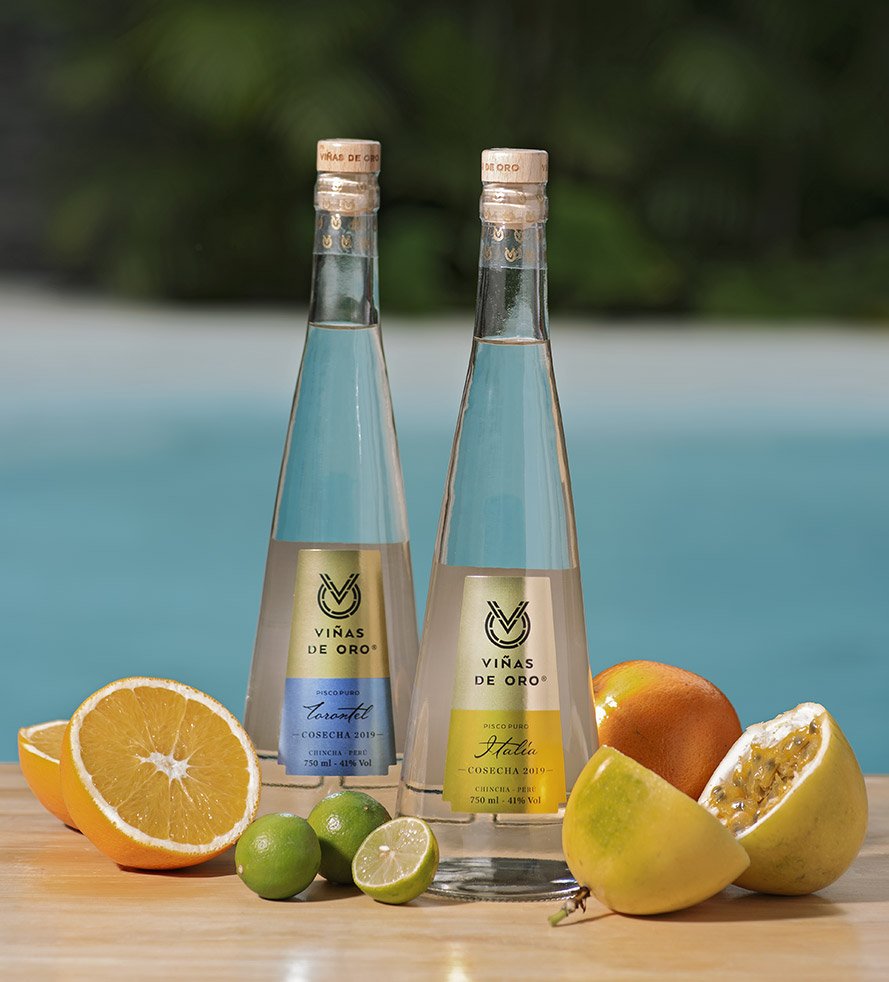 Un secolo di esperienza nel settore, produttori esperti e strutturati sono il biglietto da visita di questa realtà avviata nel 1993 nella Hacienda Hoja Redonda, al chilometro 213 della Panamerica Sur a Chincha. Con i suoi esperti pisqueros e le sue 85 medaglie conquistate a livello nazionale e internazionale, l’azienda oggi è un punto di riferimento in Perù per la produzione di Pisco, un distillato dal sapore intenso e di colore trasparente e brillante ottenuto dalla distillazione del mosto fermentato di uva. Freschezza e aromaticità sono i tratti distintivi della varietà di prodotti di Bodegas Viñas de Oro, valorizzati dall’utilizzo di uve selezionate e dalla perfetta combinazione tra tradizione e processi di elaborazione più moderni in cantina. L’attenzione riposta nei dettagli si riflette anche nel packaging, con la linea Premium che si caratterizza per l’utilizzo di una bottiglia iconica ispirata al Triangolo Aureo, un concetto matematico ed estetico conosciuto fin dall’antichità come la proporzione aurea per regalare piacevolezza alla vista.