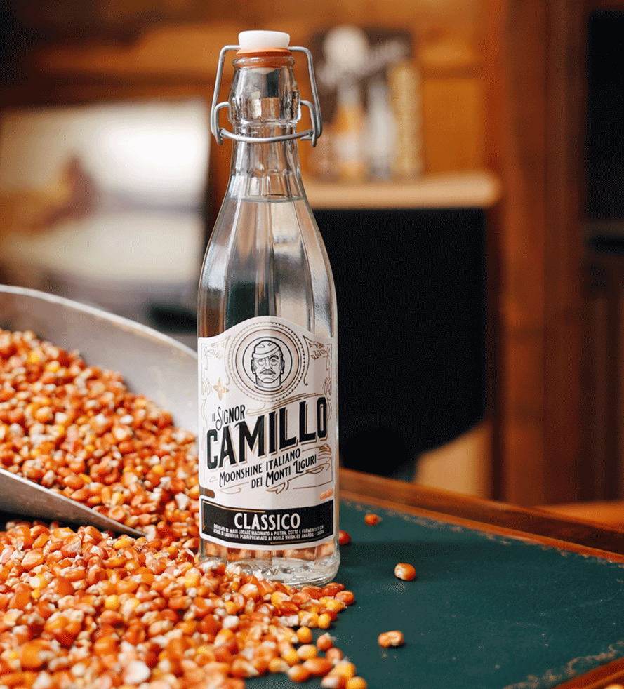Non invecchiato e non affinato, come vuole il DNA di un vero Moonshine, il Signor Camillo Classico si distingue fin dalle origini delle sue materie prime: il mais, coltivato in proprio e macinato a pietra nel mulino di famiglia, e l’acqua locale. Il processo produttivo prevede una doppia distillazione in alambicchi di rame, fino all’imbottigliamento manuale a 40% vol. Al suo debutto, ha conquistato la medaglia d’oro ai World Whiskies Awards 2023 di Londra, premio confermato anche nel 2024. Di colore cristallino, ha un sapore gradevole con note agrumate e un finale dolce, ideale da gustare liscio o come base per cocktail.