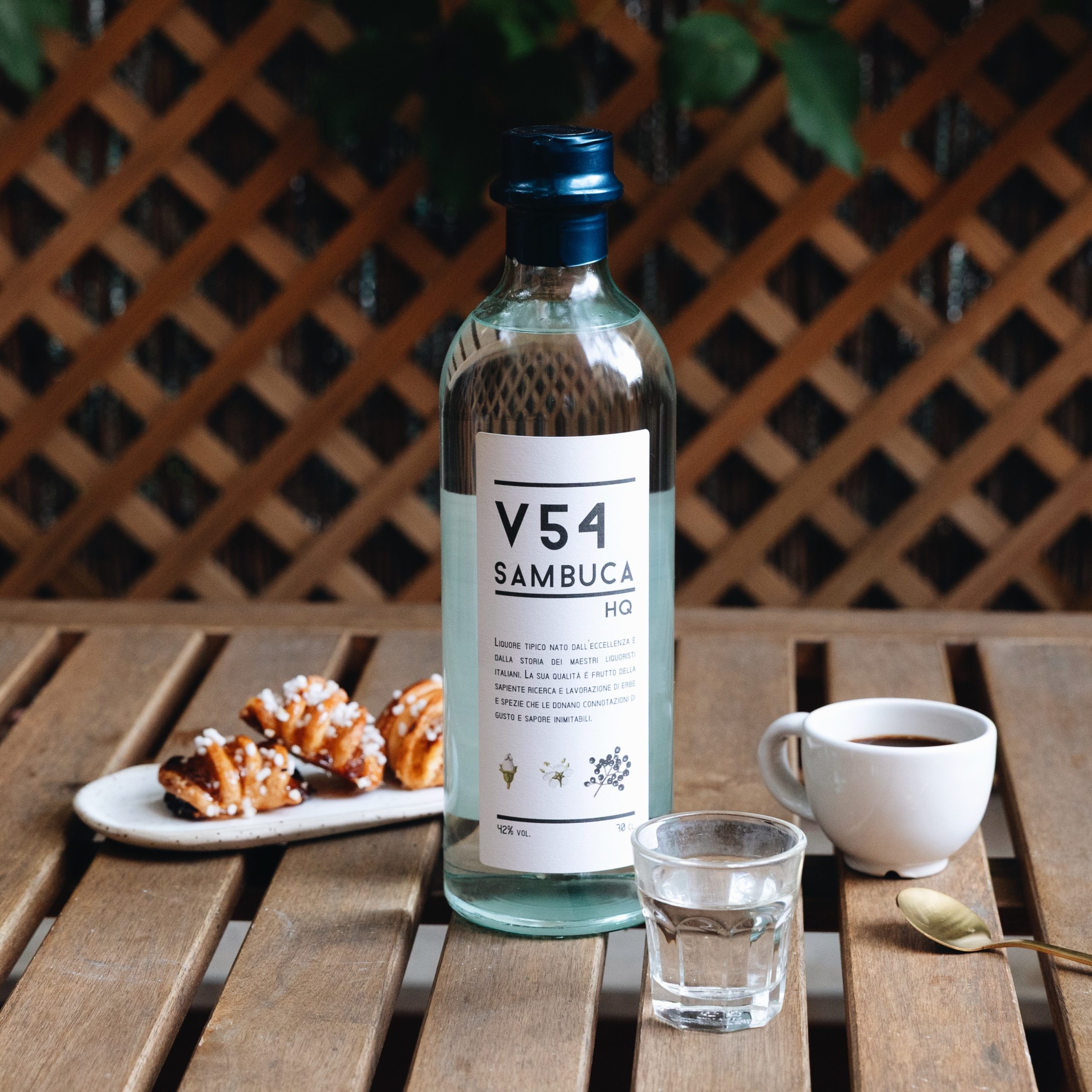 La Sambuca V54 riprende la tradizione italiana dei grandi liquori dolci e delle preparazioni classiche, elevandola all’ennesima potenza. Di colore limpido e trasparente, accompagnata da ghiaccio rivela un’opalescenza decisa e corposa, con tracciati oleosi che ne confermano la struttura. Al naso è intenso, con caratteristiche note di anice che si ritrovano in bocca, con un sorso strutturato e vellutato che abbraccia il palato fino a risolversi in un finale lungo e molto profumato.